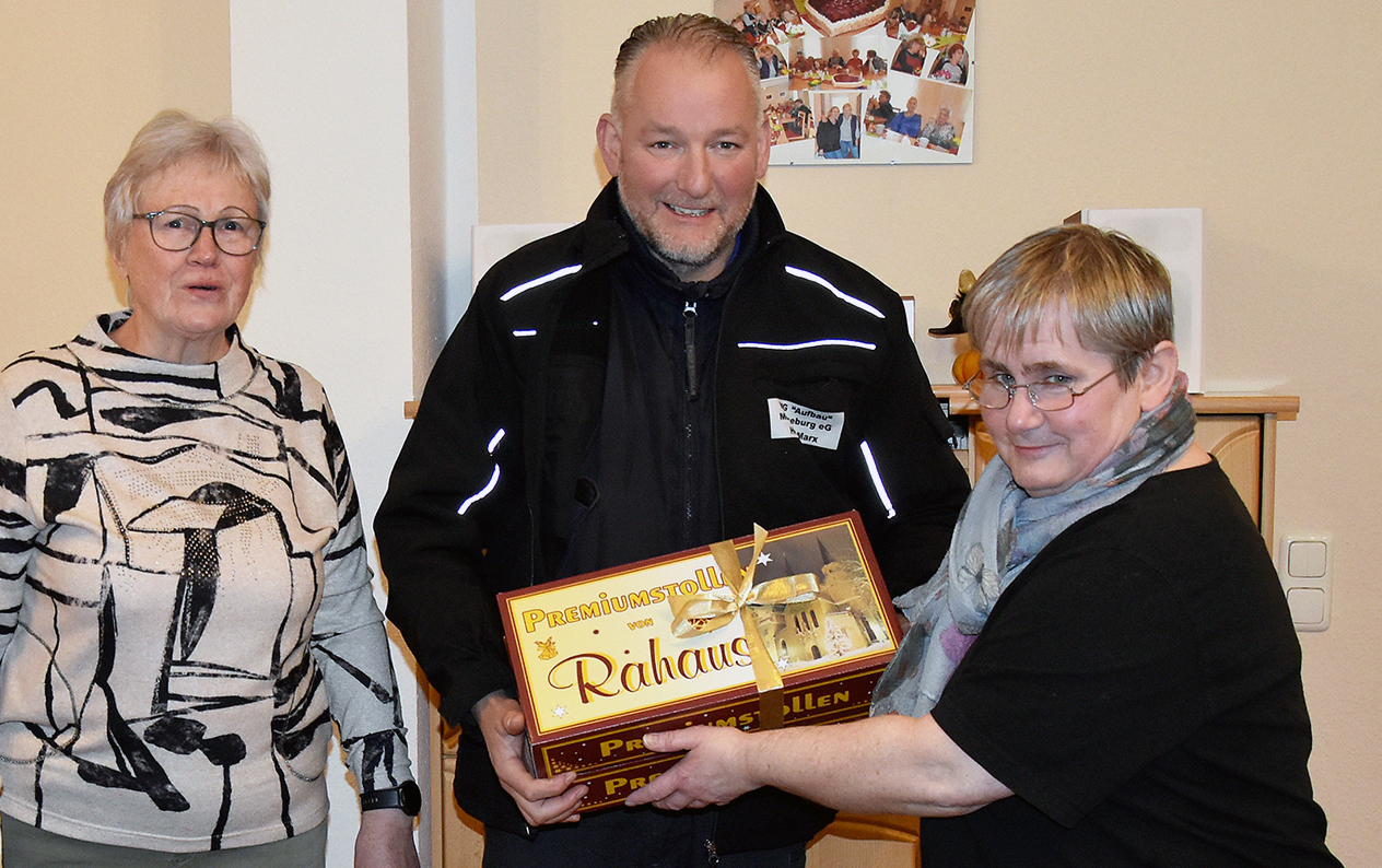 Zur Weihnachtsfeier im AWO-Bürgerhaus am Merseburger Neumarkt freute man sich über zwei "Genossenschaftler", die tolle Spenden mitgebracht hatten - jeweils 1.000 Euro, die das Bürgerhaus dringend benötig.